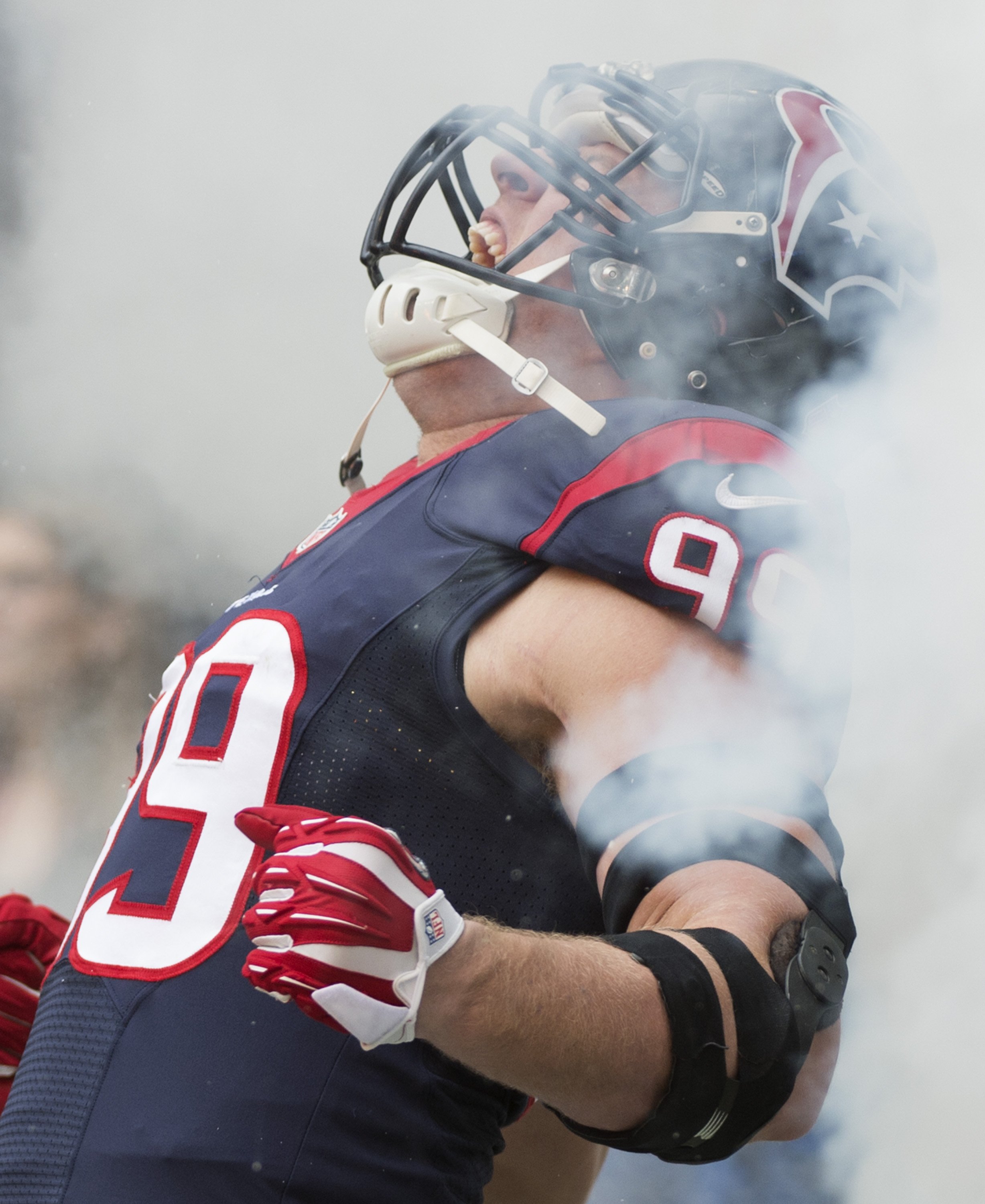 J.J. Watt (99) of the Houston Texans is introduced before a game against the New England Patriots on Sunday, Dec. 1, 2013, in Houston. (George Bridges/MCT)